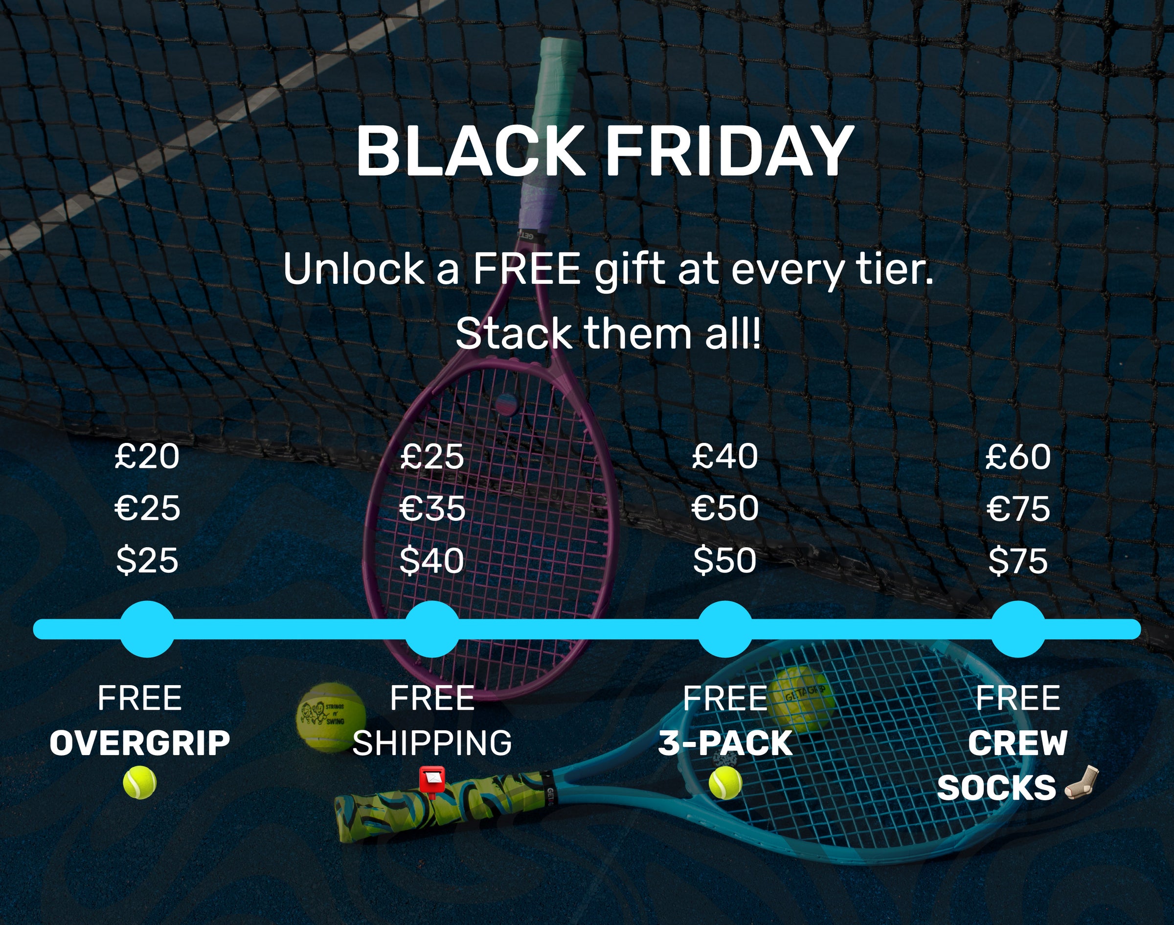 We create out-there overgrips, balls dampeners & more that bring your game to life. Covering all courts - tennis, padel, pickleball and beyond.