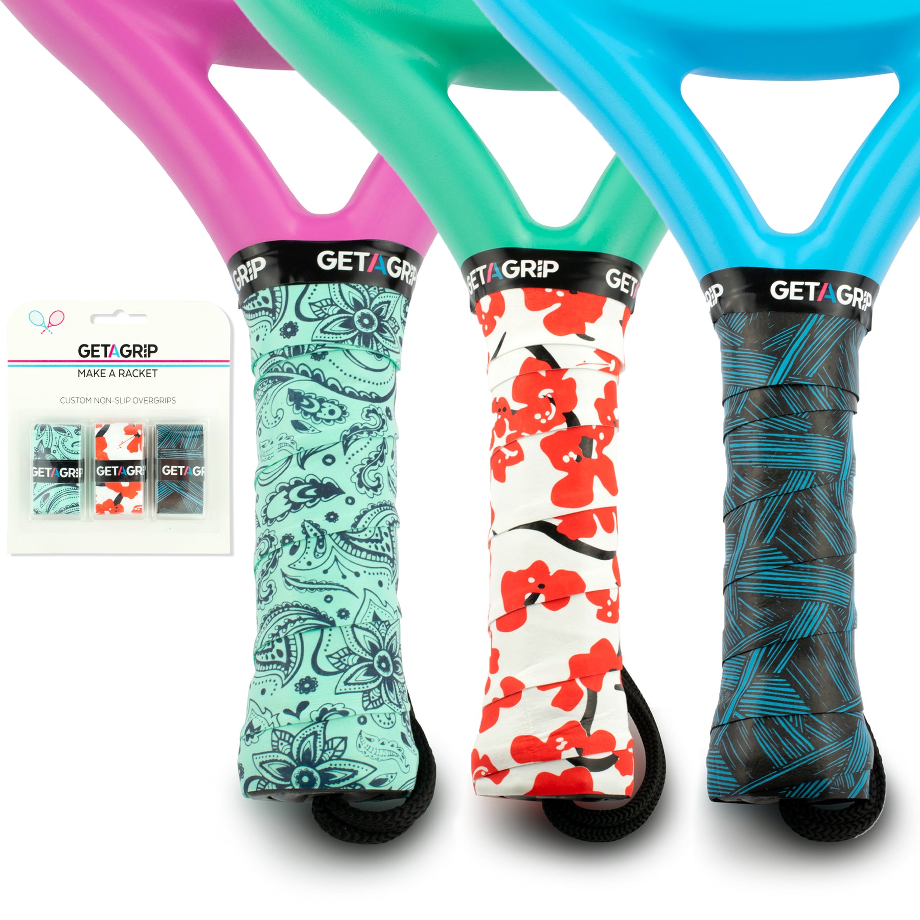 Get A Grip Non-Slip overgrips are wrapped over that original grip. They are thinner and made of softer material, creating enhanced comfort & feel without significantly increasing the width of your racket handle.